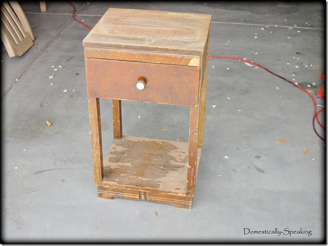 While garage sale browsing I came across this sad, pathetic, in need of much TLC night stand. I was needing a night stand for our master bedroom and I loved the $2 price tag she was asking.