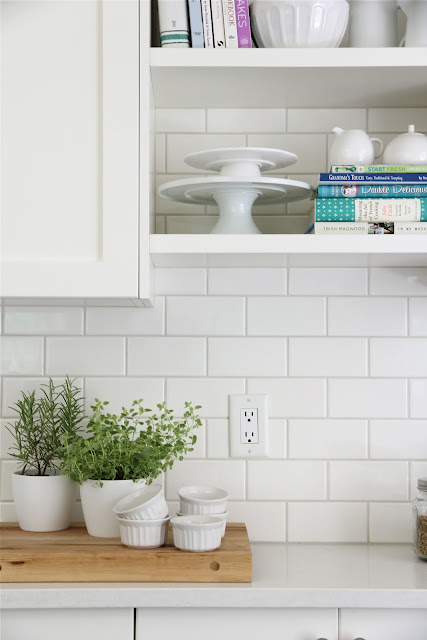White subway tiles with gray grout