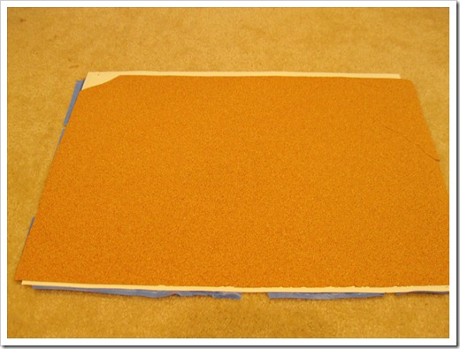So to make my memo board I took some leftover corkboard (from my daughter’s wardrobe) and some spray adhesive. I generously sprayed the foam board with the adhesive and then pressed the cork firmly on top for a minute or two.