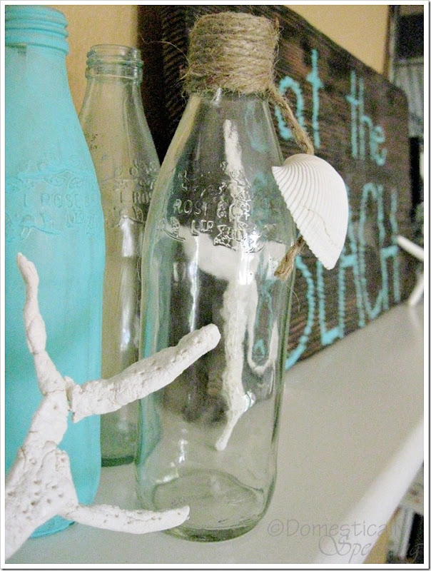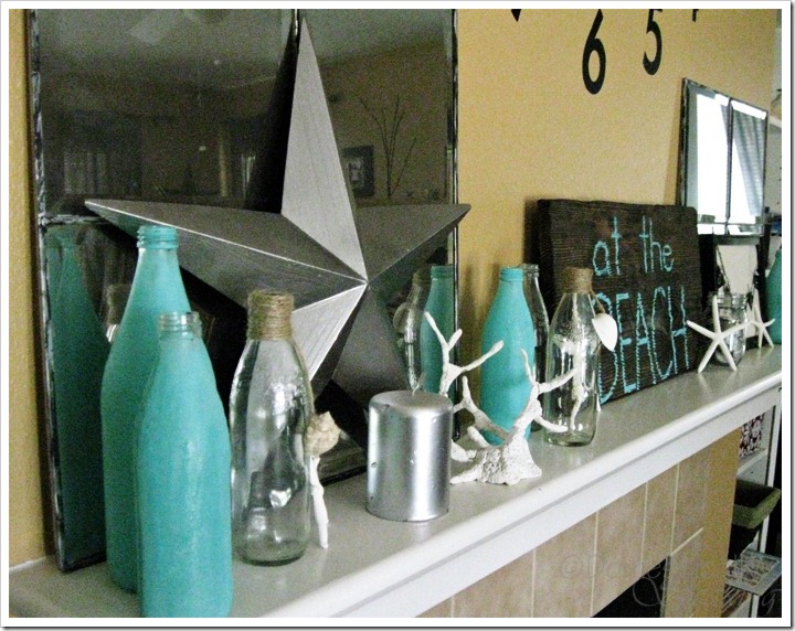 Technorati Tags: summer,mantel,shells,twine,beach,silver,blue,teal,bottles
