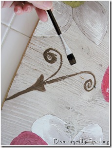 Now the fun twirl-things… adding the whimsy to the painting. I used a medium size brush and that espresso brown again.