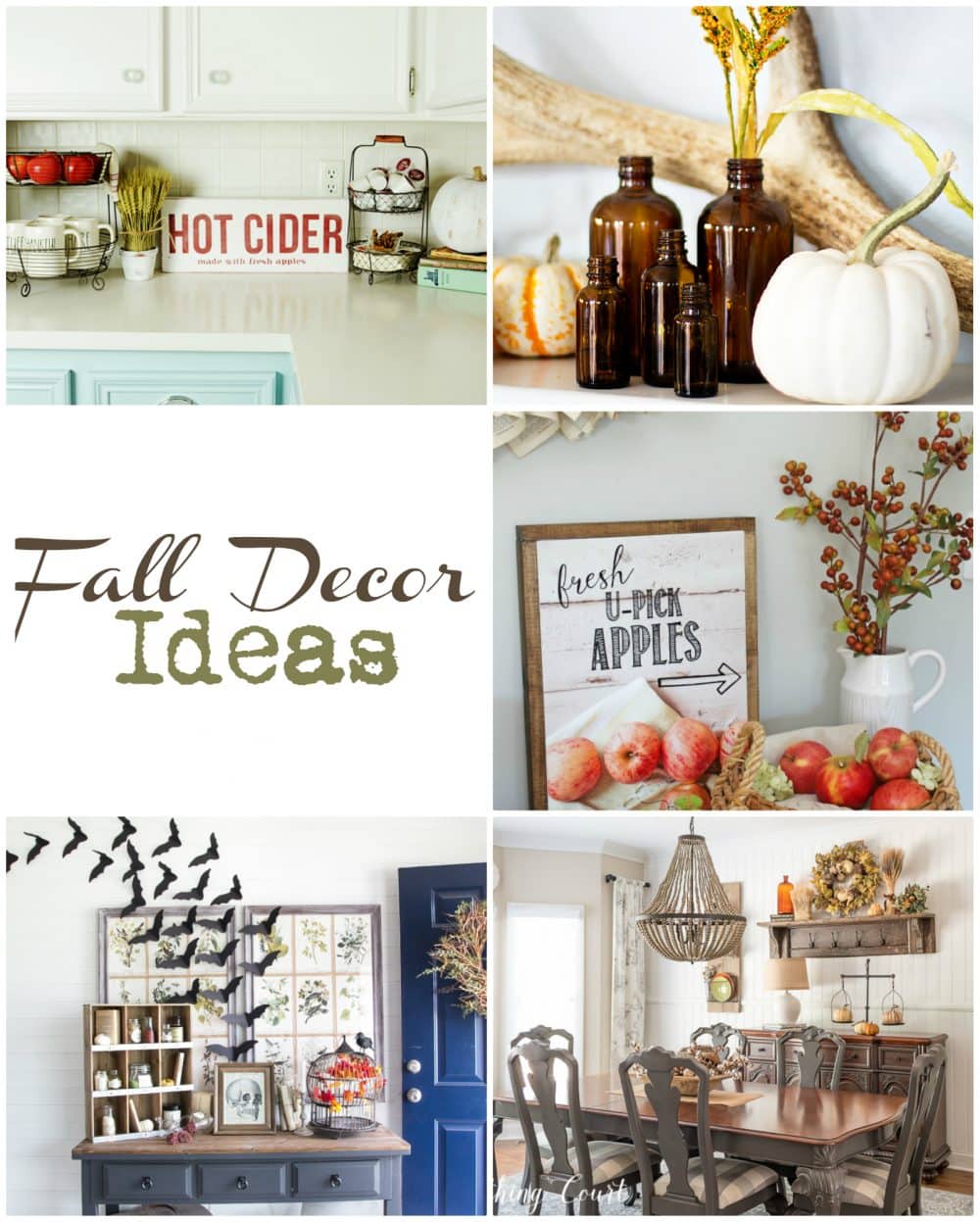 Thanks MaryAnn for including that cute free printable for us! I love all the little bottles you incorporated into your display – very nice Fall Mantle.