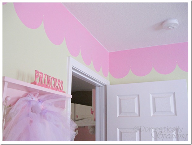 But once I saw this adorable scallop paint job that was linked up at the Power of Paint Party, I knew how I could add some {pink} to her room. Price’s Day-by-Day shared her scallop paint job in her big girl room makeover… it’s an adorable room!