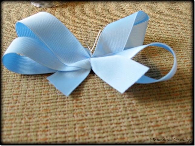 Here’s the bow I made for my youngest daughter using 2 shades of blue.